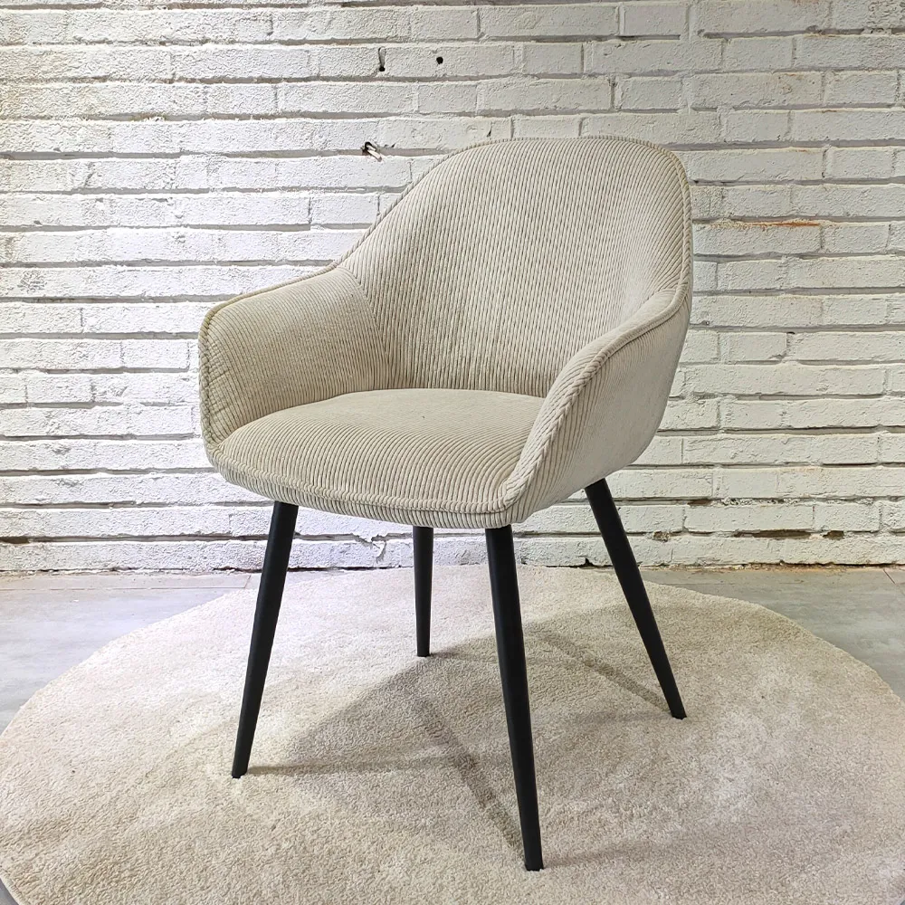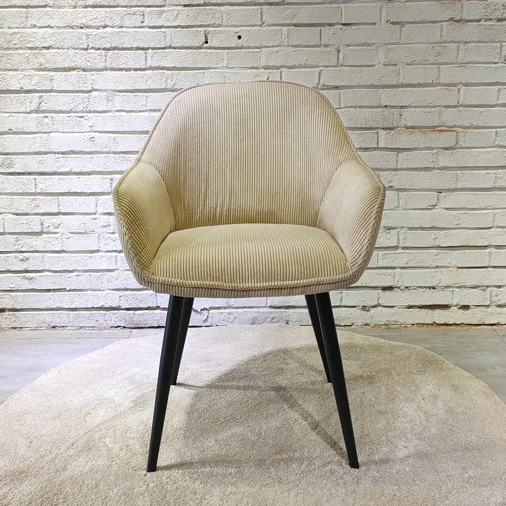 De Armstoel Guy Rib White Sand is een stijlvolle en comfortabele stoel met een eigentijds ontwerp. De zitting van deze armstoel is gemaakt van zachte ribstof in een elegante beige kleur, wat zorgt voor een warme en uitnodigende uitstraling. Het stevige frame van de stoel is gemaakt van duurzaam metaal en is uitgevoerd in een tijdloze zwarte kleur, waardoor de stoel niet alleen mooi is om te zien, maar ook erg stabiel en robuust is. Deze armstoel is de perfecte aanvulling voor elk interieur en biedt comfort en stijl in één.