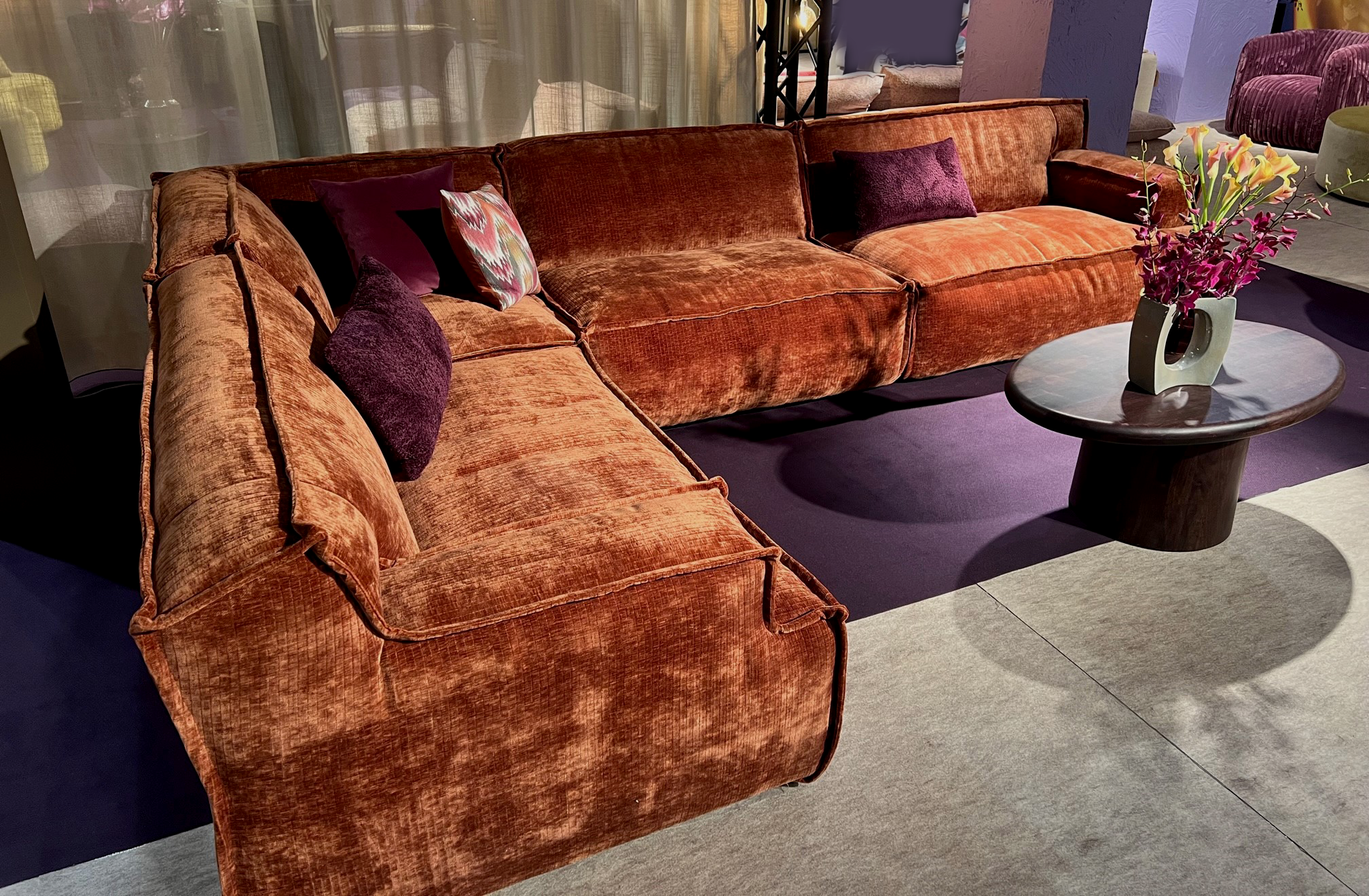 MOJO CHAISE LONGUE RECHTS GEWEVEN RIBSTOF ROESTBRUIN