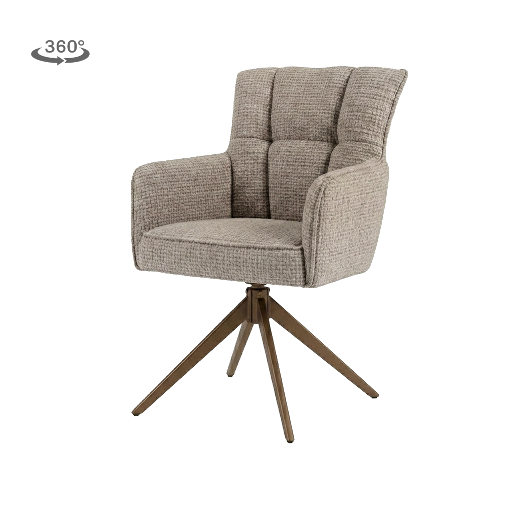 De stoel biedt een zithoogte van 52 cm en een zitdiepte van 44 cm, wat zorgt voor prettig zitcomfort. Het draaibare ontwerp voegt functionaliteit toe, ideaal voor diverse ruimtes zoals woonkamers en kantoren.