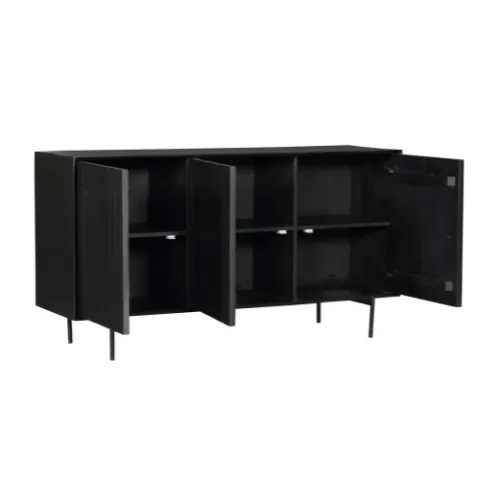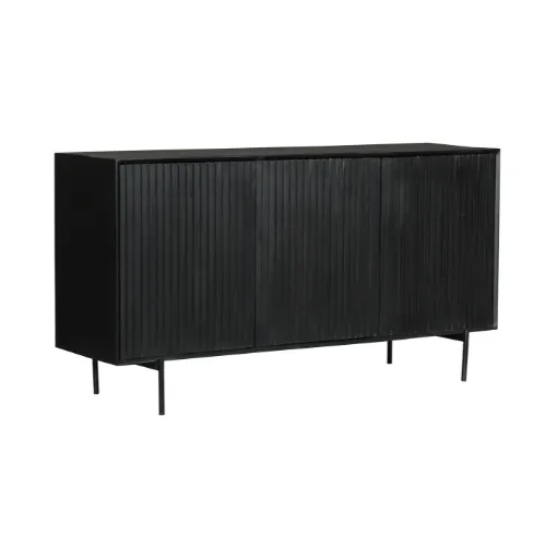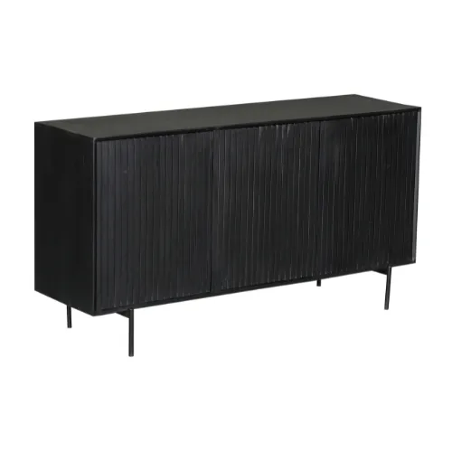 Dressoir ‘Madison’ is gemaakt van mangohout. Het metalen frame is afgewerkt met een zwarte lak. Dit model is voorzien van drie deuren. De deuren zijn voorzien van een verticaal lattenpatroon en is afgewerkt met een zwarte lak.