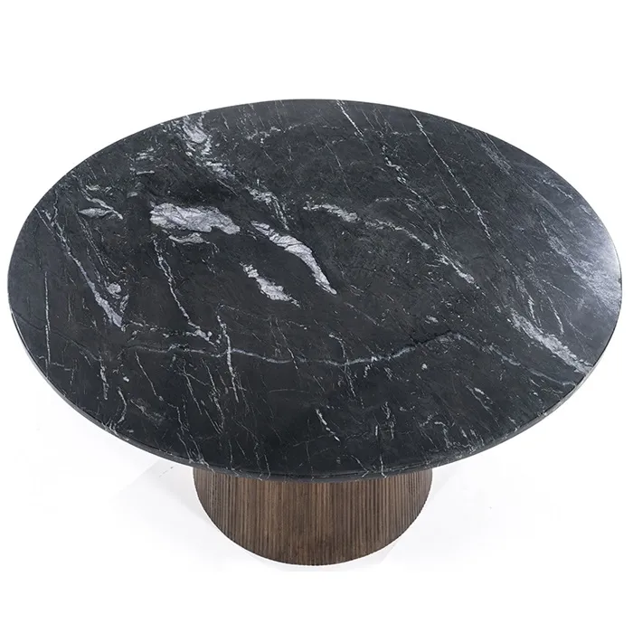 De Eettafel Maxim Rond – 130×76 cm is een luxueuze en verfijnde tafel die een vleugje elegantie toevoegt aan elke eetruimte. Met een diameter van 130 cm biedt deze ronde tafel voldoende ruimte voor comfortabel dineren met maximaal 4 personen. Door de ronde vorm neemt de tafel minder ruimte in beslag en is hij perfect voor compacte woonruimtes. Het tafelblad is vervaardigd uit marmer, dat niet alleen een luxe uitstraling heeft, maar ook uitzonderlijk duurzaam en gemakkelijk te onderhouden is. Het onderstel is gemaakt van mangohout, wat een warme en natuurlijke uitstraling biedt en een perfecte aanvulling vormt op het marmeren blad. De combinatie van het marmeren blad en het houten frame maakt de Maxim een stijlvolle keuze die zowel modern als tijdloos is, en een verfijnde uitstraling heeft die elke eetkamer verfraait.