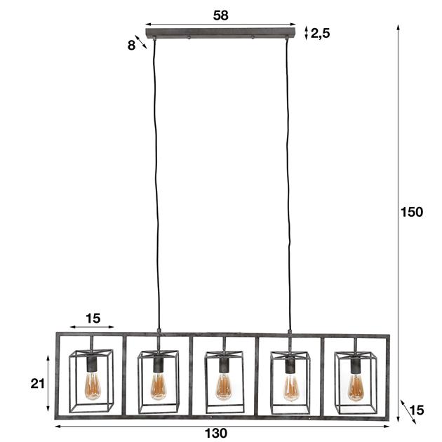 Hanglamp 5L cubic tower / Oud zilver
