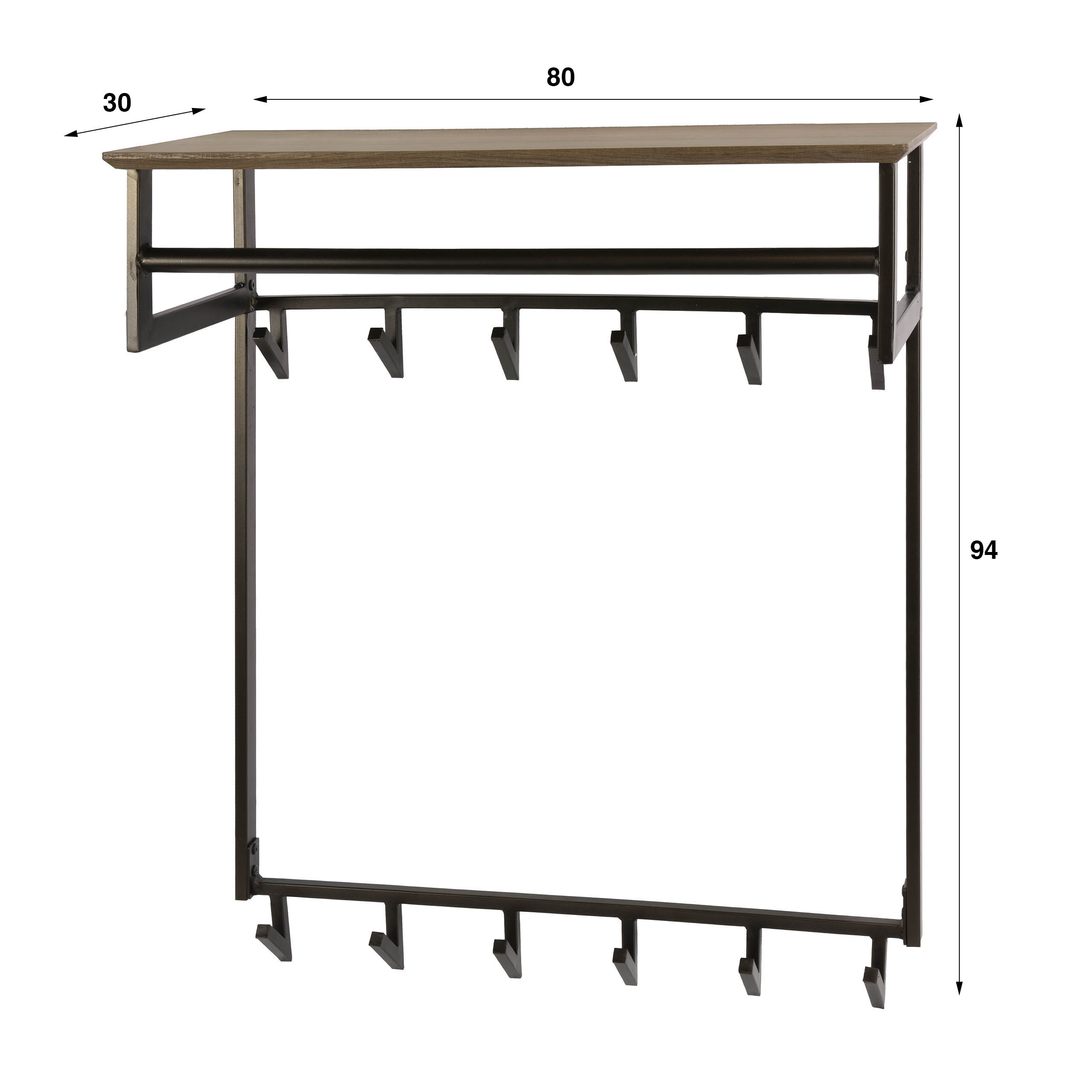 Met een breedte van 80 cm en een diepte van 30 cm biedt de kapstok een praktische afmeting zonder te veel ruimte in te nemen. Het stevige ontwerp draagt een gewicht van 7 kg, wat zorgt voor stabiliteit en duurzaamheid in dagelijks gebruik.