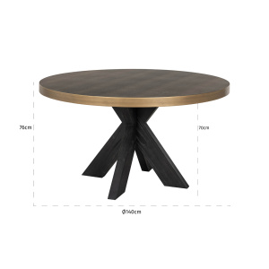 Eettafel Bloomville brass shagreen incl. glass top 140Ø