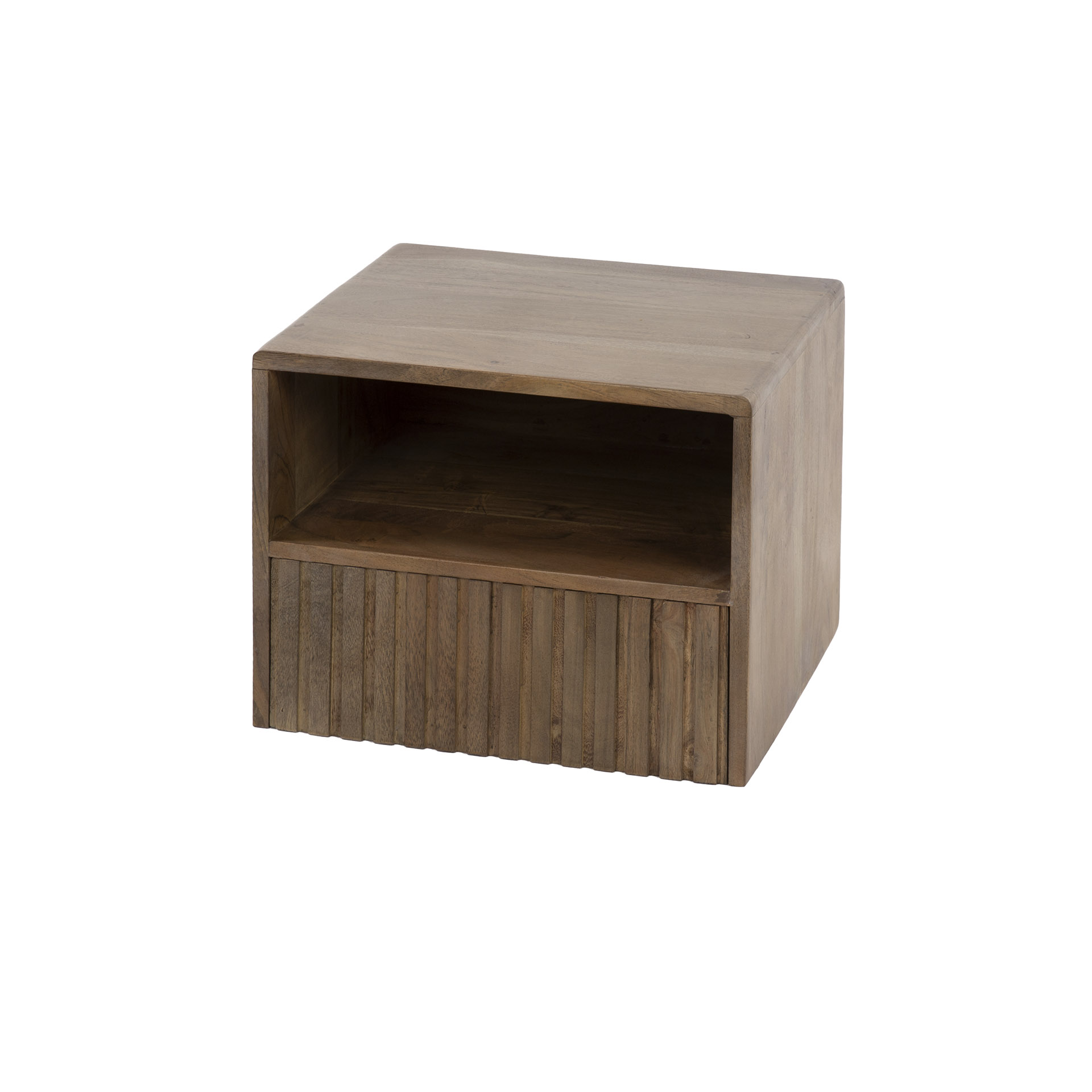 Nachtkastje Carve zwevend open vak 1 lade / Massief acacia bruin