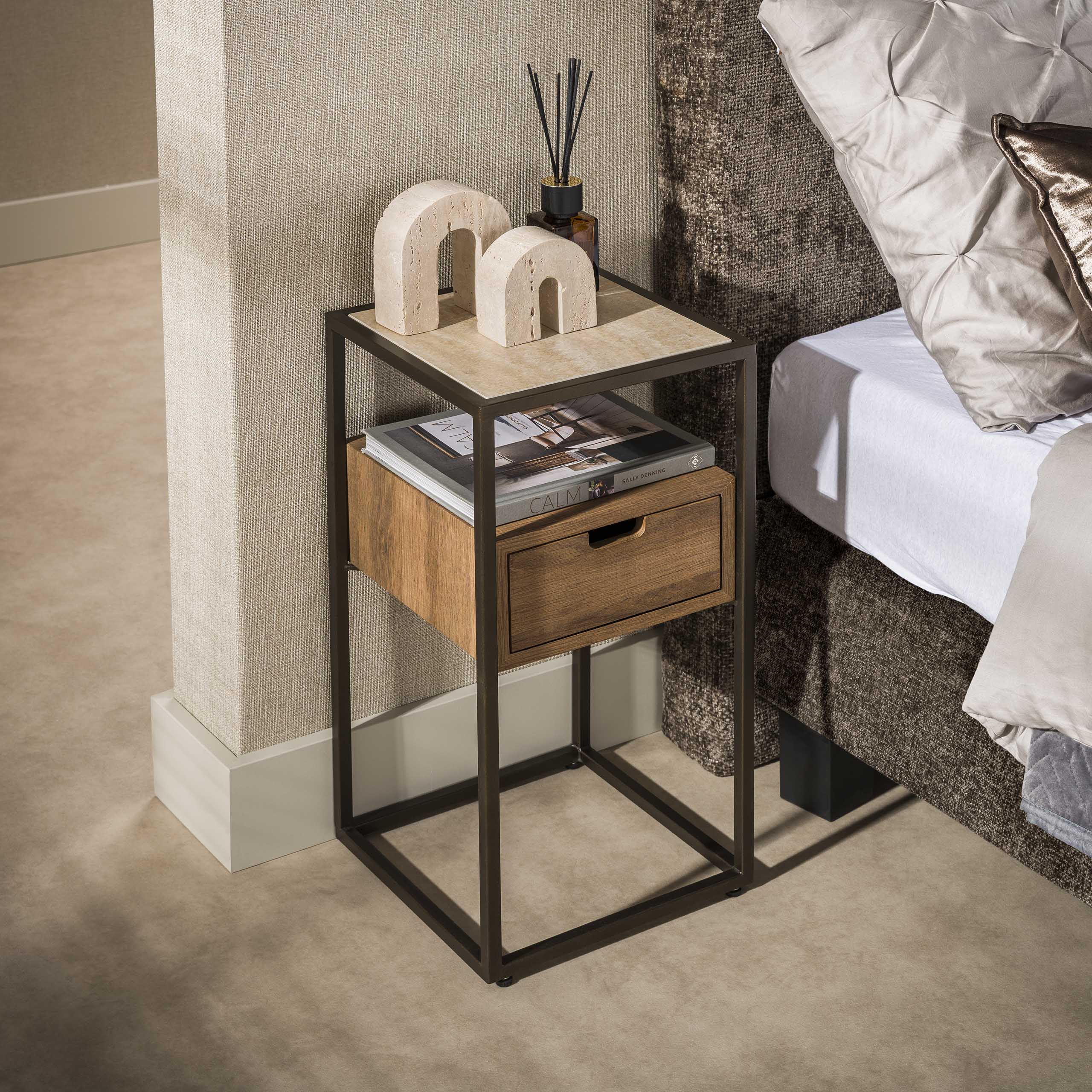 Nachtkastje Cassetto XS 1 lade / Keramiek travertin