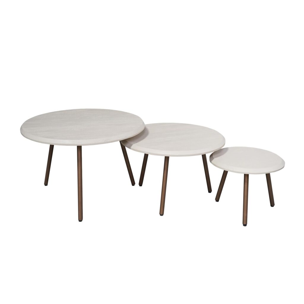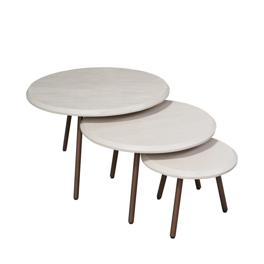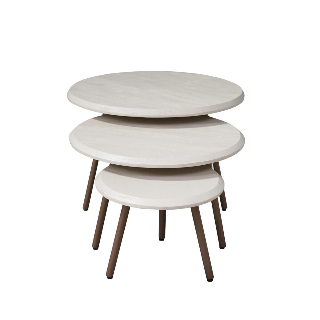 Salontafel Ohio biedt een stijlvolle en praktische toevoeging aan het interieur. Deze set van 3 salontafels is uitgevoerd in sand zorgt voor een rustige, moderne uitstraling. De slanke poten in een warme houttint geven de tafels een mooi contrast en maken de set perfect om te combineren in de woonkamer.
