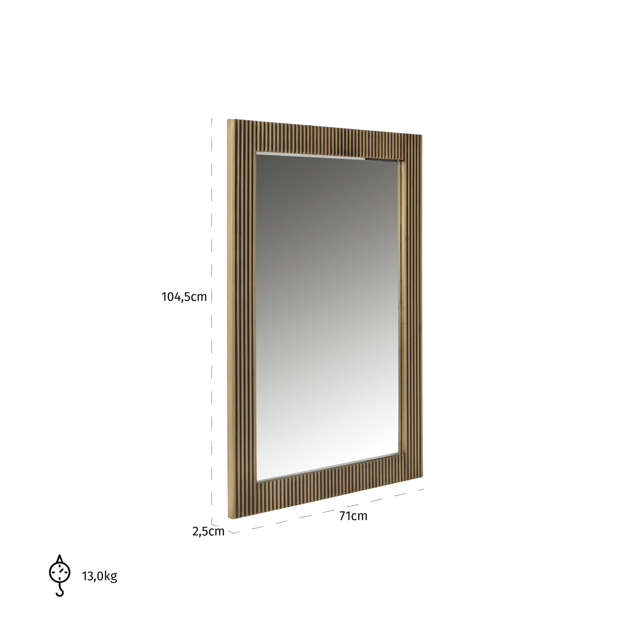 De Spiegel Ironville gold van het merk Richmond straalt elegantie uit dankzij de gouden bekleding. Dit stijlvolle design past perfect in diverse interieurstijlen en zorgt voor een luxe uitstraling in elke ruimte.