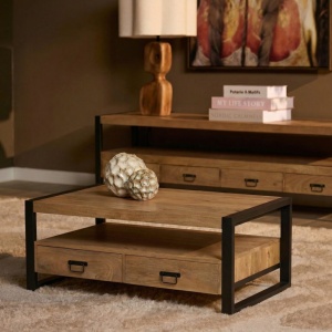 Salontafel Britt met twee lades Naturel Mangohout 120 cm