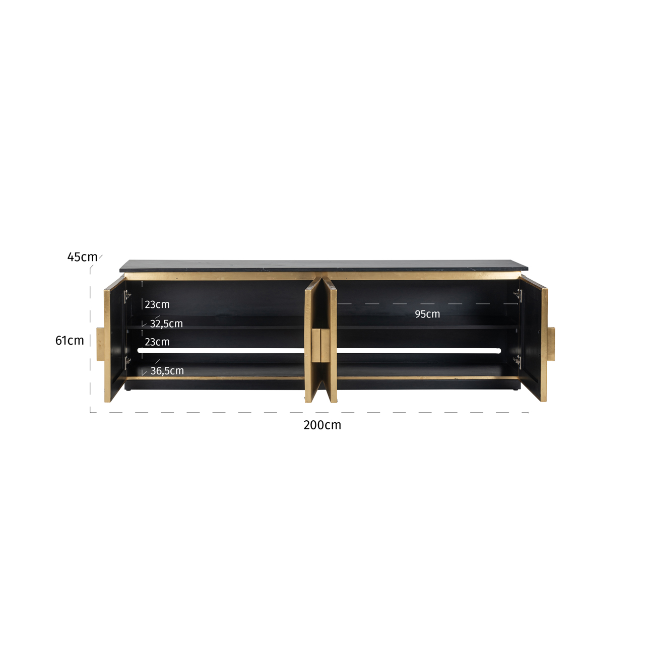 De levertijd bedraagt 3 tot 5 werkdagen, wat zorgt voor een vlotte bezorging. Geschikt voor het opbergen van media-apparatuur en accessoires, biedt dit meubel voldoende opbergruimte met een luxe uitstraling.