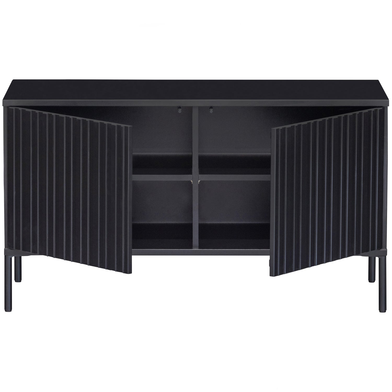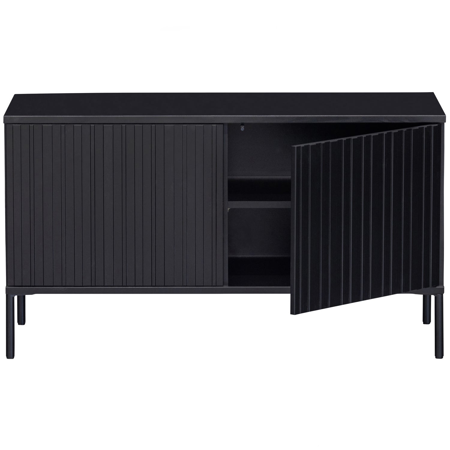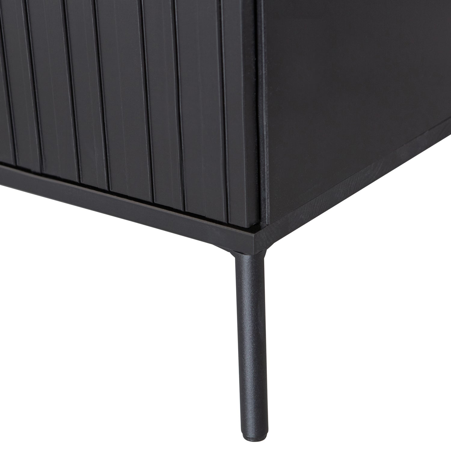 Onze succesvolle Gravure serie in een nieuw jasje! Dit Gravure New tv-meubel, uit de collectie van het Nederlandse interieurmerk WOOOD, is verkrijgbaar in twee formaten: 100 cm breed en 150 cm breed. Gravure New tv-meubel is uitgevoerd in grenenhout en afgewerkt met een diepzwarte beits. Het interieur is vervaardigd uit zwart spaanplaat. De poten zijn van metaal met een zwarte coating. Het Gravure New tv-meubel beschikt over twee deuren met een geluidloos push-to-open systeem.