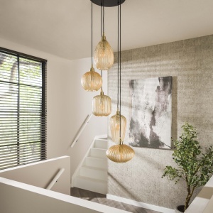 Hanglamp Mix getrapt 5-lichts / Amber glas